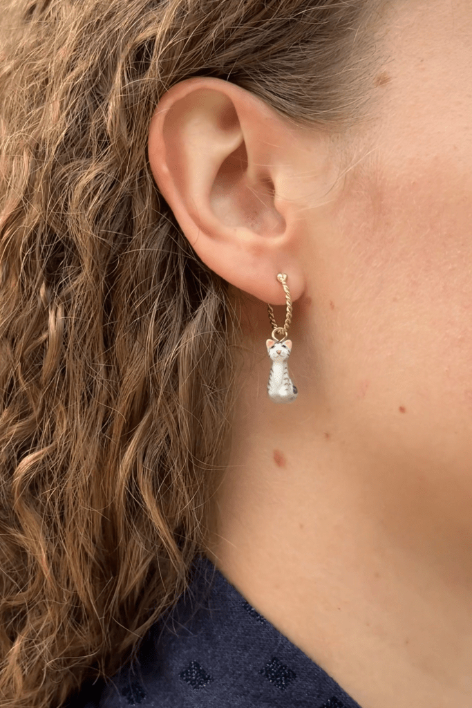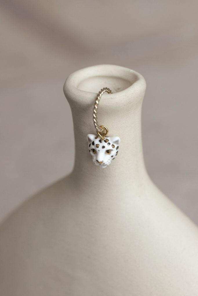 Tutto è cominciato a Brescia, quando Martina, founder di Luce, incinta del suo primo bimbo, è entrata nel negozio di uno dei nostri rivenditori. Tra gli scaffali, esposto, c’era lui: un piccolo ghepardo di Nach, brand francese di gioielli in porcellana. Da quel giorno non l’ha più lasciato: è diventato un simbolo, un compagno discreto e persino un piccolo gioco tra le dita di suo figlio.